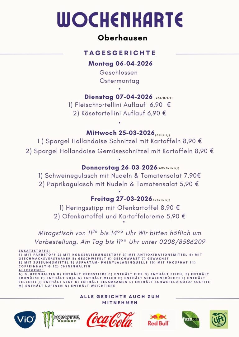 Hier finden Sie unsere täglich wechselnden Tagesgerichte, wir versuchen immer je einen mit und ohne Fleisch (VEGI) Anzubieten.